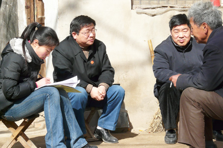 图为该院法官到当事人家里进行纠纷调解,受到当事人好评。