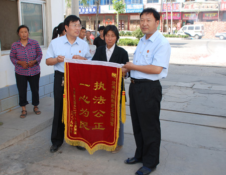 中国法院网开封频道讯 6月22日一早,河南省兰考人民法院大门前响起了鞭炮声,一对年迈夫妇手捧着写着“执法公正、一心为民”的锦旗出现在门前,他们是向该院刑庭表示感谢的。