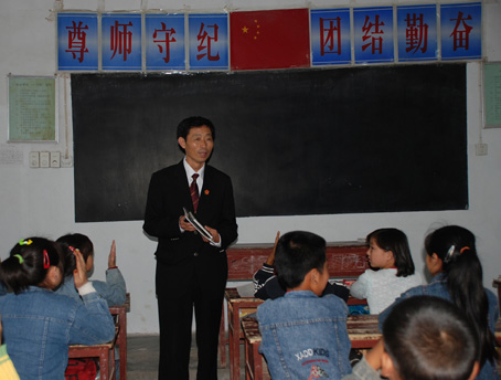 中国法院网开封频道讯 9月28日,在国庆节即将到来之际,兰考法院的法官们来到辖区三义寨乡贾堂村小学,对小学生进行爱国主义教育。