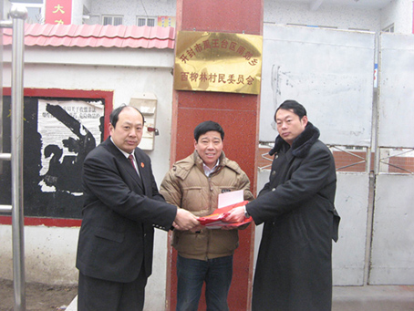 图为春节前夕,开封市禹王台区法院法官来到南郊乡西柳林村,开展送春联活动。