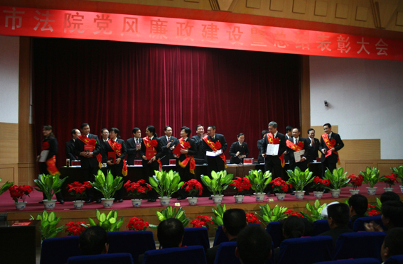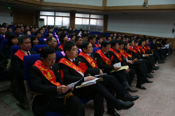 3月2日,开封中级人民法院召开全市法院党风廉政建设及总结表彰大会,中院全体干警,各基层法院院长及有关领导、受表彰的同志参加会议。中院党组副书记、常务副院长韩玉芬主持会议,党组副书记、政治部主任闫晓明宣读表彰决定,党组全体成员对立功受奖人员进行颁发奖牌、荣誉证书。党组成员、纪检组长田杰就党风廉政建设问题做重要发言,党组书记、院长张兴隆与县区法院院长签订党风廉政建设责任书。最后,张兴隆院长对去年的工作进行全面总结,对今年的工作进行总体安排部署。