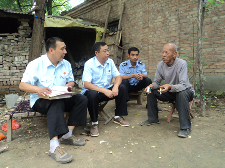 中国法院网开封频道讯 河南省杞县人民法院在审判和执行工作中,注重用司法手段维护弱势群众的合法权益,对涉及赡养、扶养、抚养、三农等方面的案件做到“三快”:快立案、快审理、快执行,让他们在经济发展的时代切身体会和感受到司法关怀,有力促进了农村地区的和谐与稳定。图为9月2日下午6时,该院执行法官前往辖区苏木乡董那村董超老汉家中,就一起借款案件做当事人的思想工作。