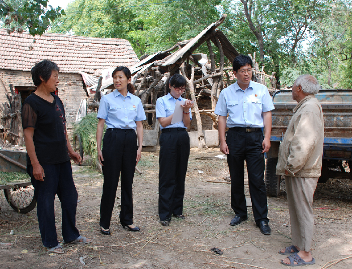 中院民一庭深入开展“转变作风、深入基层、服务群众”活动,积极带案下办,走进群众,贴近群众,细致办案,化解矛盾。在办理兰考县某村高学义与王佰福财产损害赔偿纠纷上诉一案中,双方当事人因王佰福的小奶牛死亡原因及小奶牛价格方面分歧很大,庭审中双方情绪激烈,案件诉讼标的不大,仅5000元钱,但与群众的生产生活休戚相关。合议庭法官决定深入乡村进一步做工作。5月19日,民一庭副庭长、该案审判长郭宝霞带领合议庭全体人员带案下办,到百里外的乡村走进当事人家中、奶牛圈旁,给当事人做细致入微的工作,为案件的妥善处理打下良好的基础,当事人感动不已。图为法官耐心倾听当事人诉说案情并为当事人做工作。