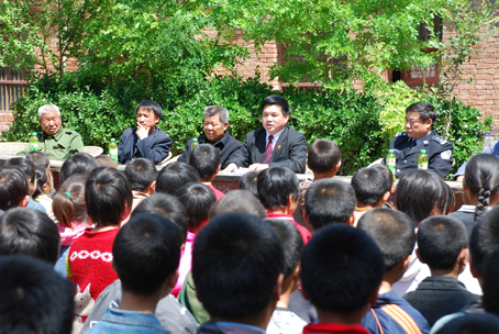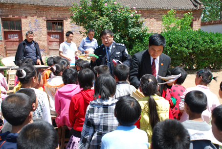 中国法院网开封频道讯 为深入开展“发扬传统、坚定信念、执法为民”主题教育实践活动,“六一”儿童节前夕,兰考县法院法官来到南彰镇孙桥小学,为该校近千名学生上了一堂生动的法制课,该院政治处主任庄著立结合近年发生的典型案例,以案说法,深入浅出地讲解法律知识,增强学生自觉学法、用法、守法的能力。同时该院法官还为孩子们送上了科普读物、文具等学习用品。